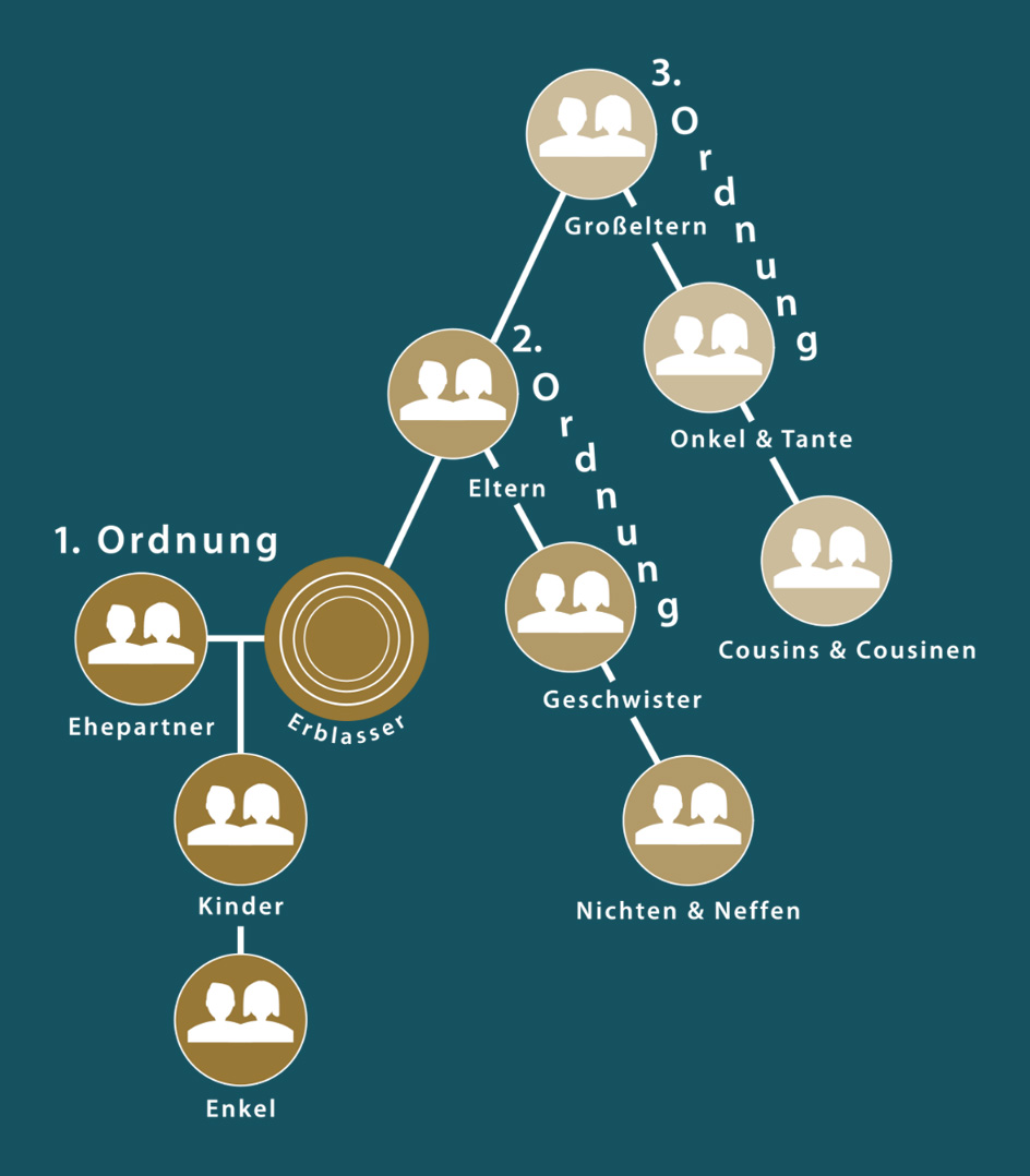 Nach ihr sind die Angehörigen in festgelegten Ordnungen erbberechtigt: